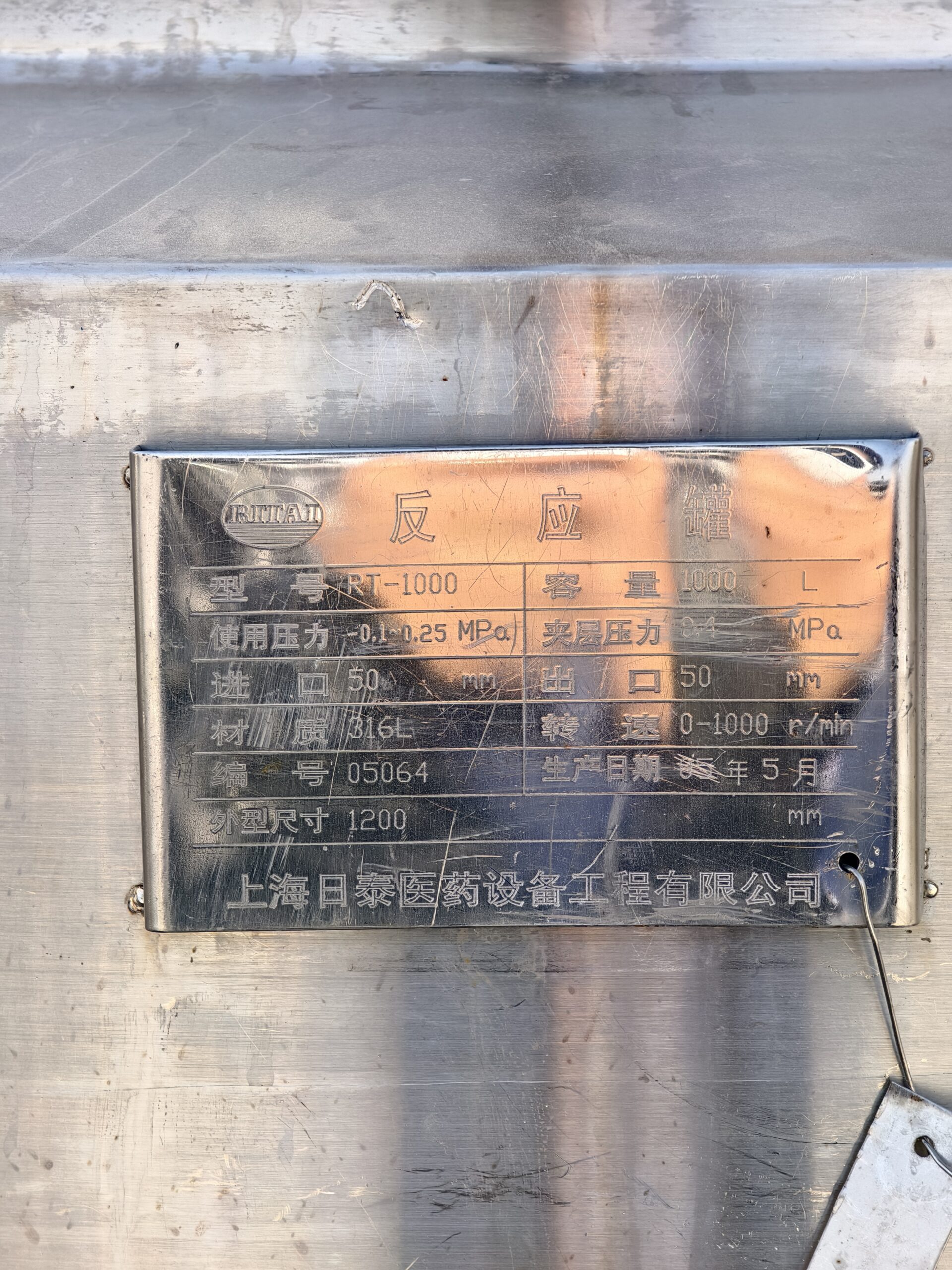 1000L Vertical Stainless Steel Reactor