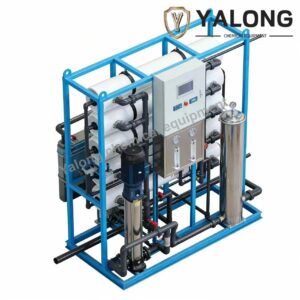 The Reverse Osmosis (RO) process is the core technology for seawater desalination, effectively treating high-salinity water with TDS exceeding 10,000 ppm. The system primarily consists of a high-pressure pump, energy recovery device, and RO membrane modules. Operating at 60-70 bar to overcome seawater’s osmotic pressure, it forces water through semi-permeable membranes under continuous flow. This process removes over 99.5% of salts and most dissolved impurities. The purified water is collected, while the concentrated brine stream is discharged.