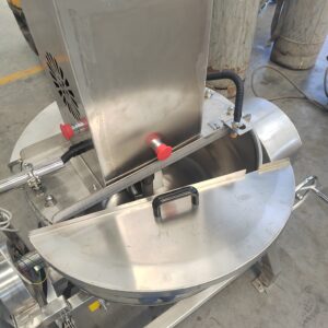 The gas-fired stirring jacketed kettle is a highly efficient and energy-saving food processing equipment, mainly used for frying,boiling, stewing, and other processes. It is suitable for production scenarios such as cassava flour (gari) processing, sauces,fillings, condiments, candies, and cooked meat products. Compared to electric or steam heating, gas heating provides faster temperature rise, making it ideal for areas with convenient gas supply.
