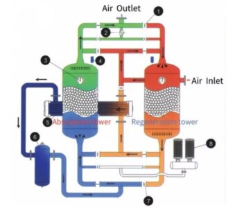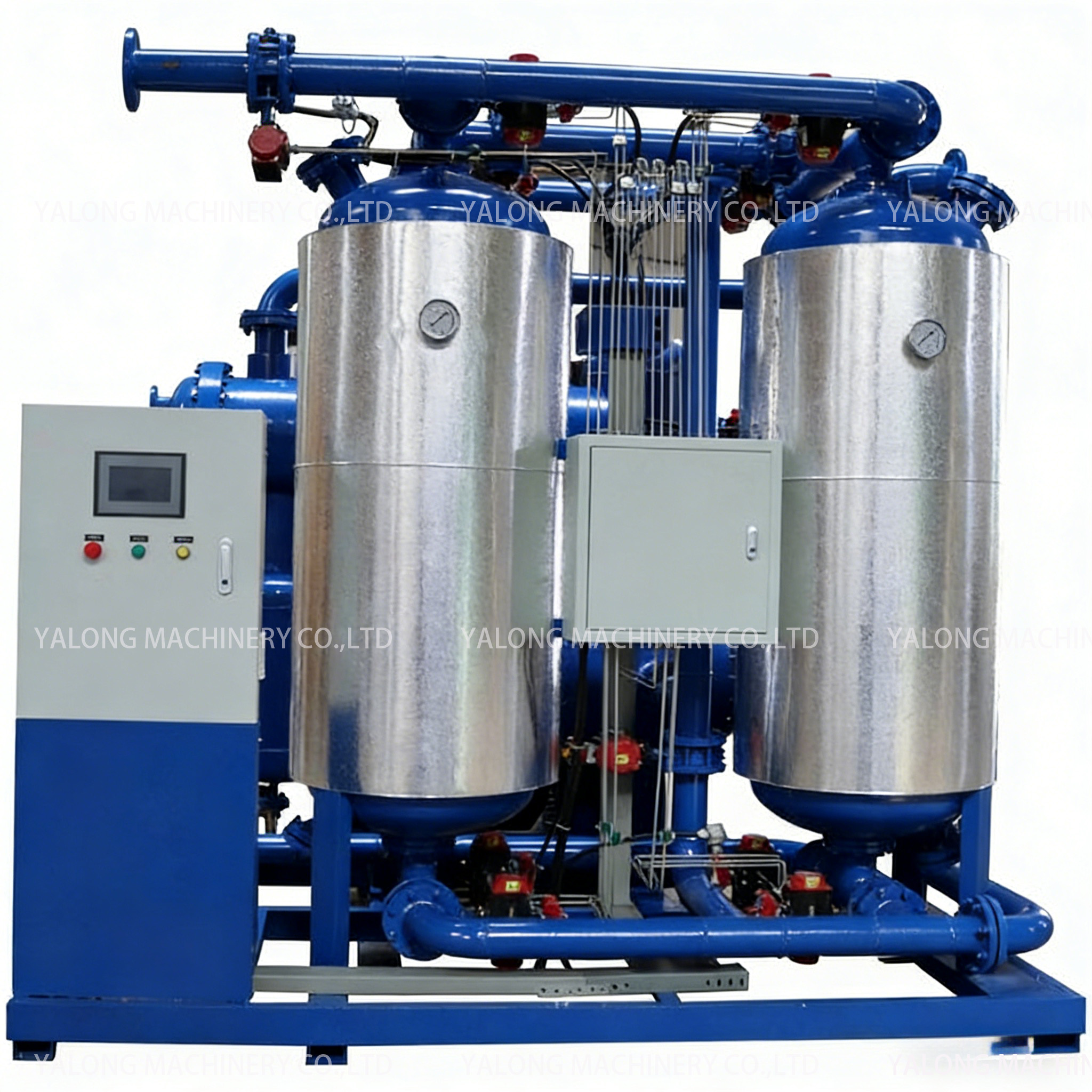 The compressed air in the energy-saving type of the compression heat adsorption dryer contains a large amount of heat. In most purification systems, heat is first cooled through a cooler to lower its temperature and then dried by a dryer to the required dew point. When using a traditional adsorption dryer, approximately 15% of the processing capacity is consumed for the regeneration of the adsorbent to achieve the required dew point. The compression heat regeneration dryer makes full use of the heat of the uncooled compressed air to reduce the adsorbent. Therefore, on average, only 1% of the processing capacity is consumed to cool the adsorbent to achieve continuous drying.
