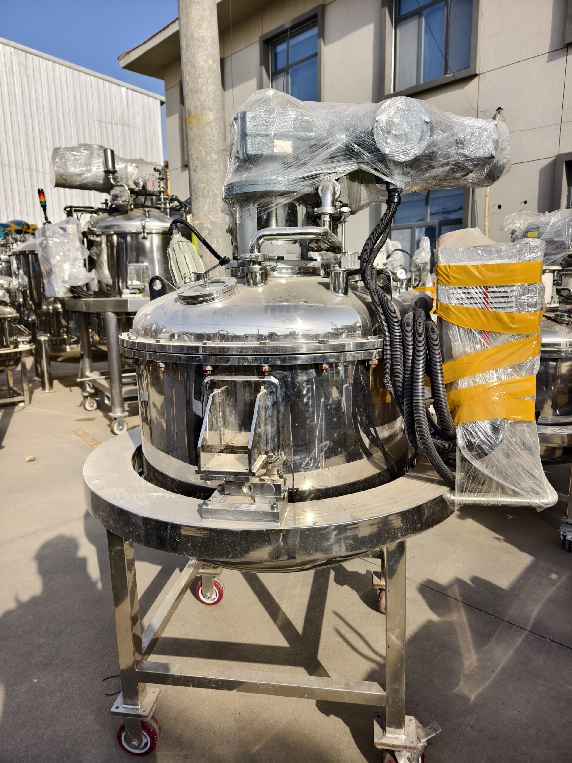 This stainless steel jacketed reactor is widely used in chemical, pharmaceutical, food, resin, paint, and adhesive production. The tank is constructed with high-quality stainless steel, featuring precision-polished interior and exterior surfaces for durability and excellent sealing performance. The jacket supports steam heating, electric heating, or cooling water circulation to meet various process temperature requirements. Multiple impeller types—anchor, frame, turbine, propeller—are available to enhance mixing efficiency. The reactor supports VFD speed control, temperature display, pressure monitoring, explosion-proof options, and fully customized specifications. With stable operation, easy cleaning, and low maintenance, it is an ideal solution for liquid, slurry, and solid-liquid mixing processes.