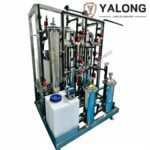 The Reverse Osmosis (RO) process is the core technology for seawater desalination, effectively treating high-salinity water with TDS exceeding 10,000 ppm. The system primarily consists of a high-pressure pump, energy recovery device, and RO membrane modules. Operating at 60-70 bar to overcome seawater’s osmotic pressure, it forces water through semi-permeable membranes under continuous flow. This process removes over 99.5% of salts and most dissolved impurities. The purified water is collected, while the concentrated brine stream is discharged.