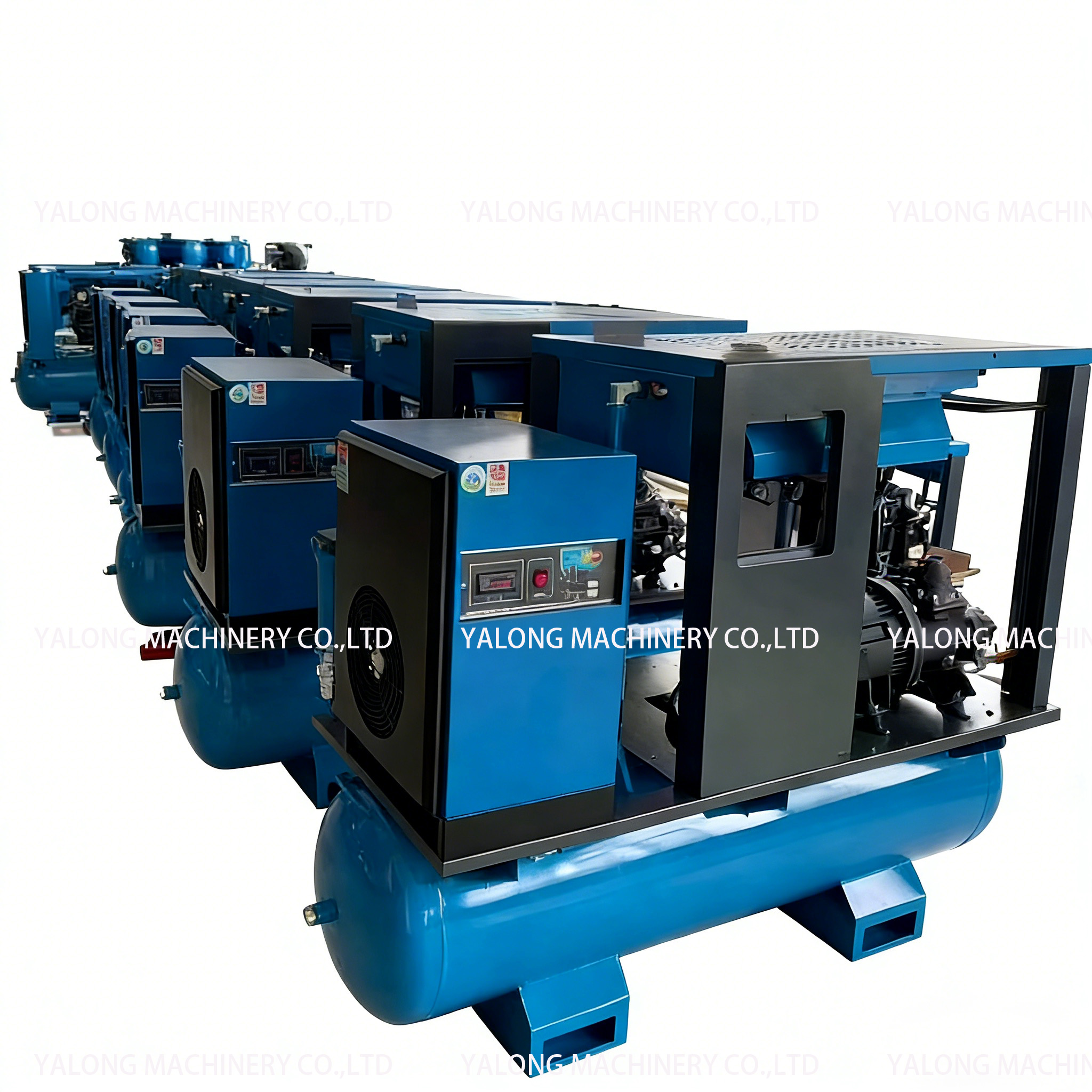 This compact silent air compressor integrates a high-efficiency dryer and integrated water tank, delivering a space-saving all-in-one solution for industrial and commercial applications. Engineered with low-noise compression technology, it operates at ≤60dB, ideal for noise-sensitive workshops and labs. The built-in dryer removes moisture from compressed air to prevent pipeline corrosion, while the integrated tank ensures stable air supply. Its lightweight, portable design allows flexible placement, and the energy-saving motor cuts power consumption by 15% versus conventional models. Suitable for pneumatic tools, spray painting and precision equipment, it balances quiet operation with reliable performance.