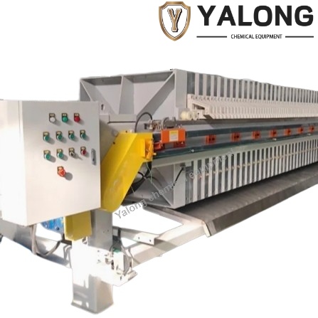Fully automatic plate and frame chamber and membrane filter press consists of a series of membrane plates and chamber plates arranged alternately to form filter chambers. Driven by the feed pump, slurry is pumped into these chambers where solid-liquid separation occurs through the filter media (filter cloth). Once a filter cake is formed within the chambers, water (or compressed air) is injected into the membrane plates to apply additional pressure, thoroughly compacting the solid material in the filter chambers.