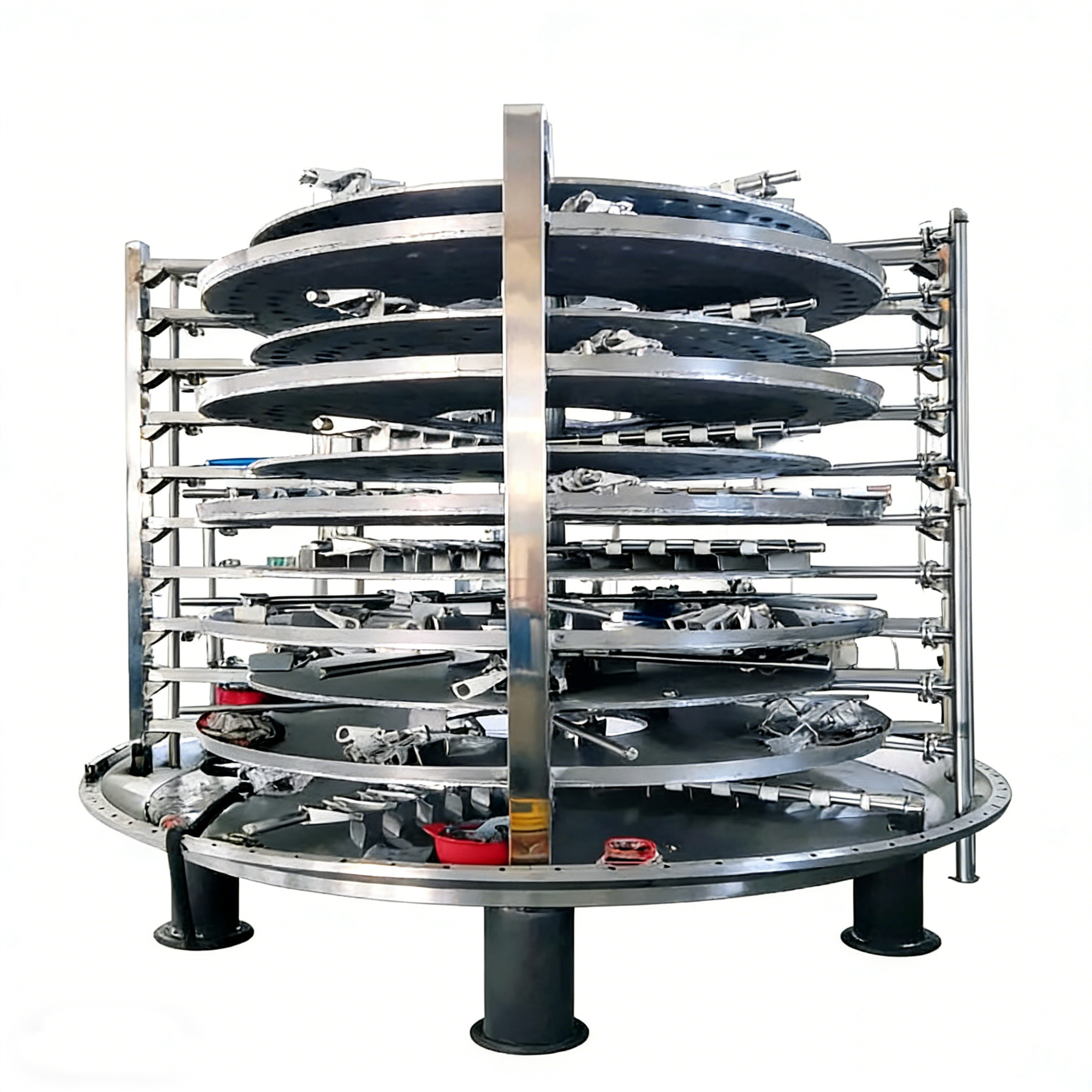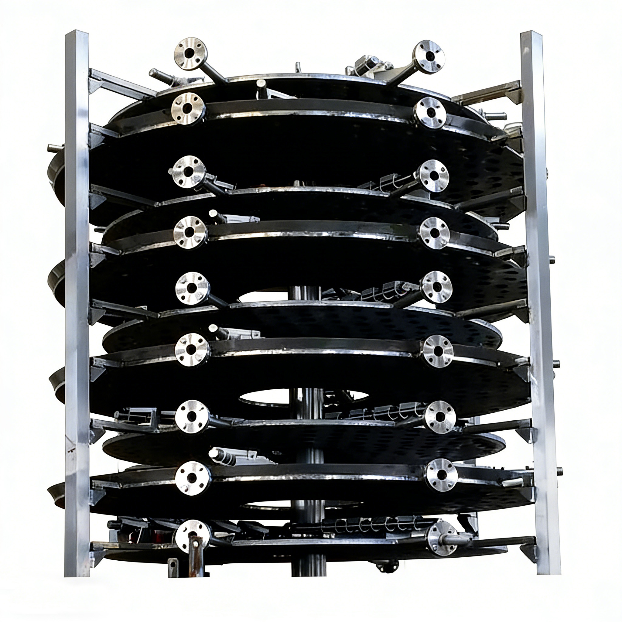 This high-efficiency disc dryer is an energy-saving industrial equipment suitable for batch material drying in multiple industries. It is particularly suitable for difficult-to-dry materials such as paste, granules, and powder. Its core is a multi-layer heating disc structure. Materials are evenly distributed and move slowly on the disc. Low-temperature and efficient drying is achieved through conduction heating, significantly reducing the component loss of heat-sensitive materials. Equipped with a precise temperature control and speed regulation system, it can flexibly adjust process parameters according to the characteristics of the materials to ensure uniform drying and finished product quality. The fully sealed structure reduces heat loss and dust pollution. The automated feeding and discharging system enables continuous production, significantly increasing production capacity and reducing labor costs. It is widely applicable to large-scale drying operations in fields such as chemical engineering, food, and pharmaceuticals.
