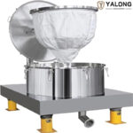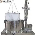 The platform structure of the L(P)D series bag-type centrifugal separator with upper discharge is that the shell and the flat plate are welded together. The shell cover and the shell adopt a flange connection quick-opening structure. The opening of the shell cover is assisted by a balance cylinder (spring). The shell cover is equipped with feeding pipes, cleaning pipes, sight glasses, observation lights, air vents, etc. The external connection ports all use standard baskets. The discharging method is that the shell cover is opened, and the filter bag is lifted as a whole through the cantilever to the drum for feeding.