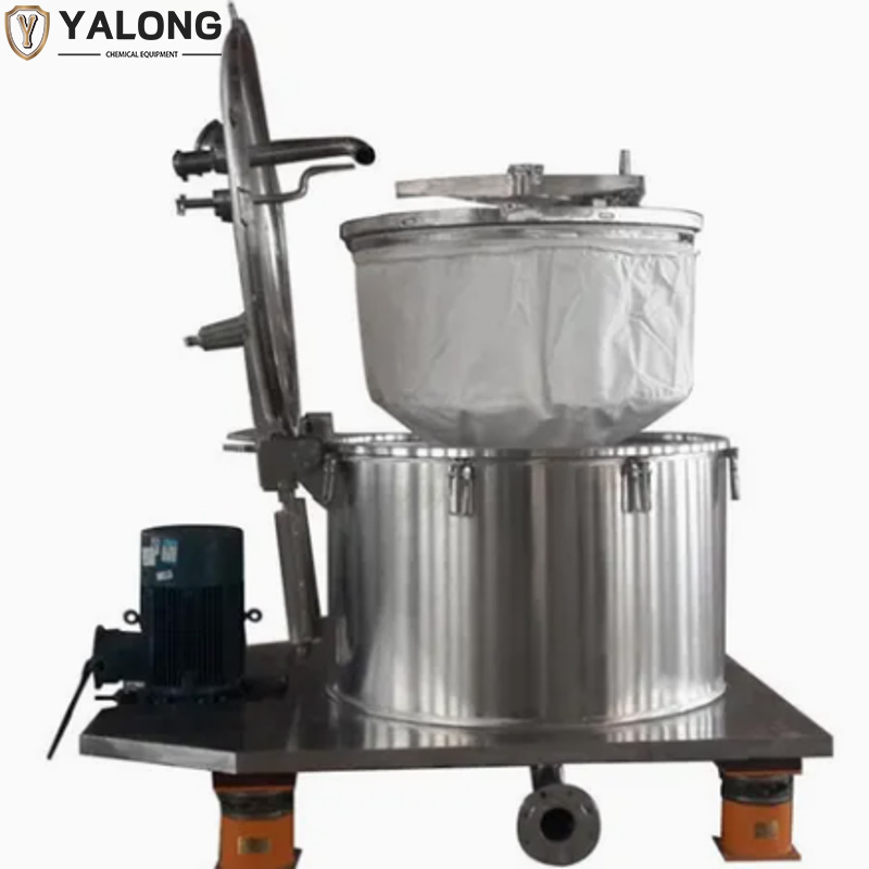 The motor is controlled by frequency conversion to start smoothly. The drum rotates at high speed, creating a centrifugal force field. The feeding speed, cleaning speed, and liquid removal speed can all be selected arbitrarily within a certain drum (rated speed). Under the action of the centrifugal force field, the materials are evenly distributed on the drum for liquid separation. The gaps of the liquid phase filter bag, after being thrown by the drum wall holes, fall into the cavity of the machine shell and are discharged from the liquid outlet on the base plate. The solid-phase materials are retained in the drum. The material liquid is added through the feeding pipe, and the washing water is added through the washing pipe. The feeding and washing can be controlled by a dedicated valve. After dehydration, the machine stops. The cover is opened, and the filter bags containing solid materials are lifted out of the drum by the cantilever and unloaded. After the unloading is completed, the inside of the centrifuge can be cleaned in all directions.