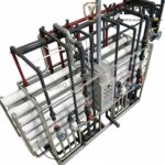 The Reverse Osmosis (RO) process is the core technology for seawater desalination, effectively treating high-salinity water with TDS exceeding 10,000 ppm. The system primarily consists of a high-pressure pump, energy recovery device, and RO membrane modules. Operating at 60-70 bar to overcome seawater’s osmotic pressure, it forces water through semi-permeable membranes under continuous flow. This process removes over 99.5% of salts and most dissolved impurities. The purified water is collected, while the concentrated brine stream is discharged.