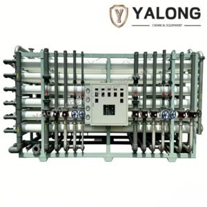 The Reverse Osmosis (RO) process is the core technology for seawater desalination, effectively treating high-salinity water with TDS exceeding 10,000 ppm. The system primarily consists of a high-pressure pump, energy recovery device, and RO membrane modules. Operating at 60-70 bar to overcome seawater’s osmotic pressure, it forces water through semi-permeable membranes under continuous flow. This process removes over 99.5% of salts and most dissolved impurities. The purified water is collected, while the concentrated brine stream is discharged.