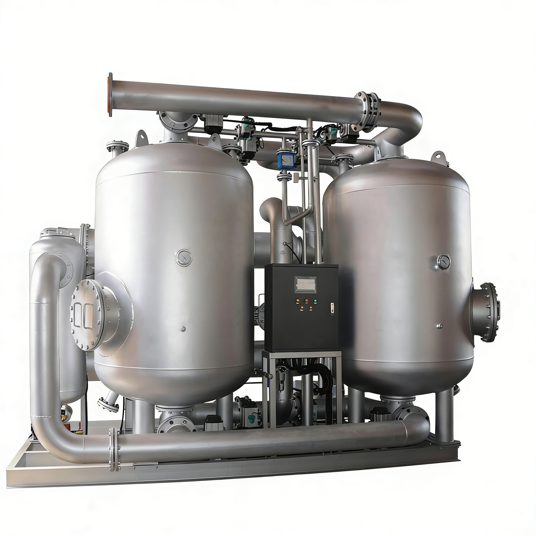 This large-capacity compression heat adsorption air dryer is an energy-efficient solution for industrial compressed air dehydration, tailored for heavy-duty continuous production lines. It leverages waste compression heat to regenerate adsorbents, eliminating the need for extra heating energy and cutting operational costs significantly.