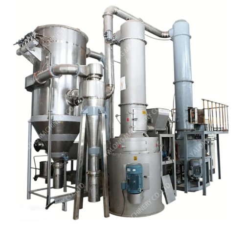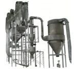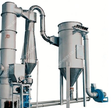The working principle is that at the bottom of the dryer, larger and wetter particle clusters are mechanically broken down under the action of the agitator. Particles with lower moisture content and smaller particle size are carried up by the rotating airflow and further dried during the upward process. Due to the rotational flow of the gas and solid phases, the inertia of the solid phase is greater than that of the gas phase, and the relative velocity between the two phases is relatively large, which enhances the mass and heat transfer between the two phases. Therefore, this machine has a high production intensity.