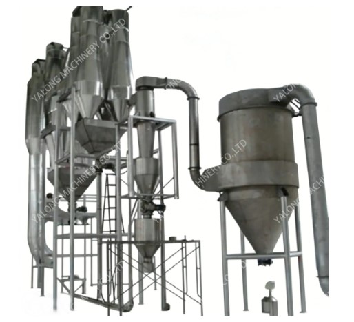 The rotary flash dryer is a highly efficient drying equipment integrating drying, crushing and screening functions. It is mainly applied in the dehydration treatment of high-viscosity and heat-sensitive materials in the chemical, food and ceramic industries, such as kaolin, soy protein and metal hydroxides. This equipment forms a rotating flow field through tangential air intake at the bottom, combined with a stirring device to shear and crush the materials. It utilizes gas-solid two-phase flow to enhance heat and mass transfer, featuring short drying time (50% shorter than traditional equipment), high thermal efficiency, and low energy consumption. The core structure of the equipment includes a classification ring, cyclone plates and a mechanical stirring system. By adjusting the diameter of the classification ring, the fineness and final moisture content of the material can be precisely controlled (for example, the final moisture content of calcium carbonate is ≤0.1%). The bottom is equipped with a special cooling device to prevent the material from deteriorating due to high temperature. The air distribution structure reduces the operating resistance, and the air pressure seal and bearing cooling technology extend the service life of the equipment. Its circumferential high gas velocity design can prevent material from adhering to the wall, support continuous feeding without bridging phenomenon, and is suitable for handling complex material forms such as paste and filter cake.
