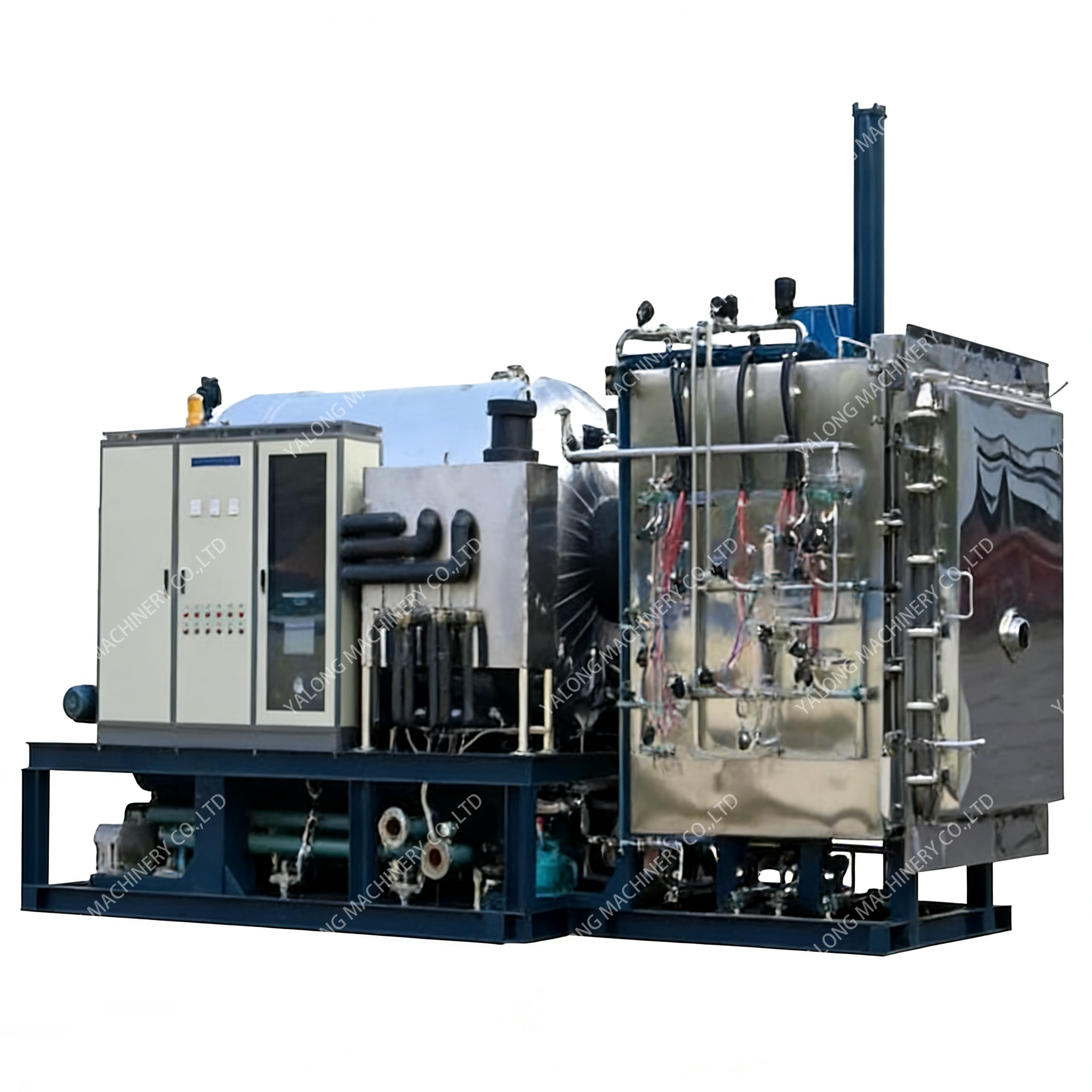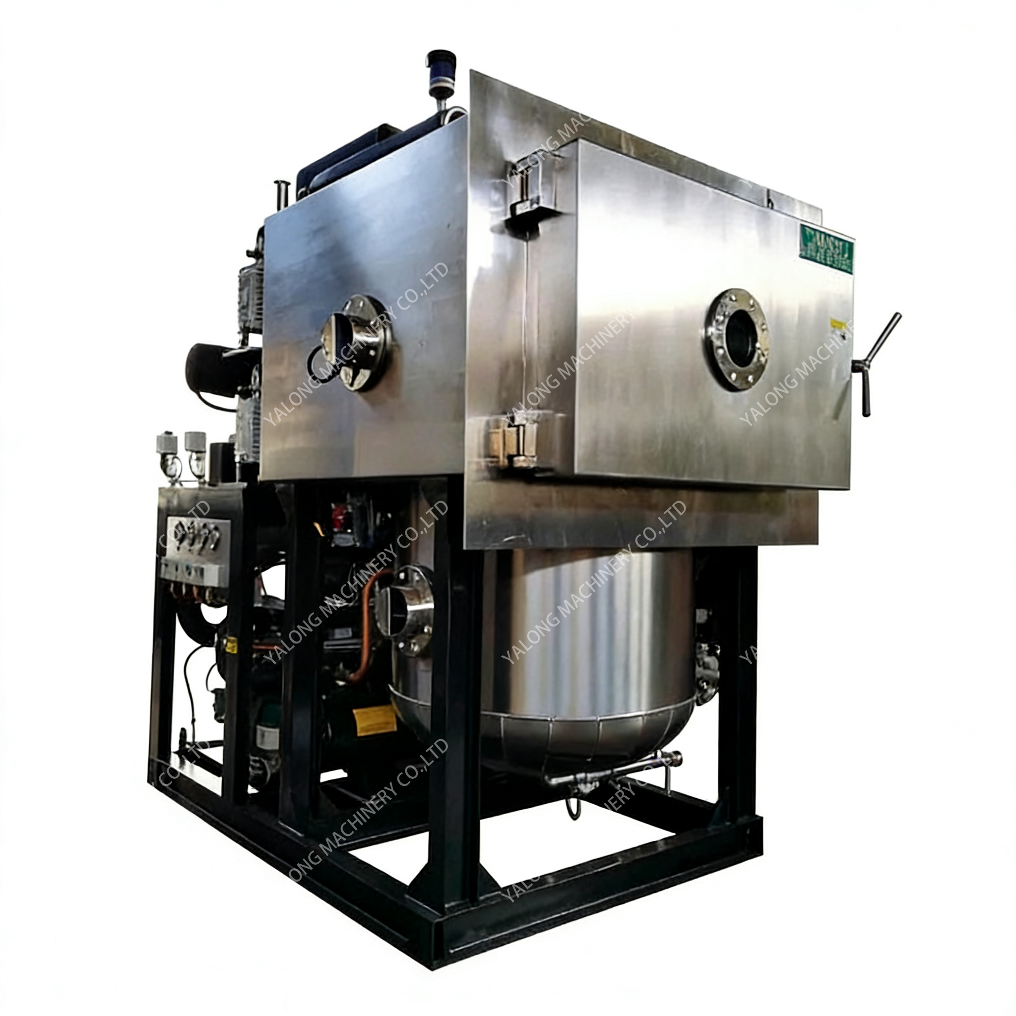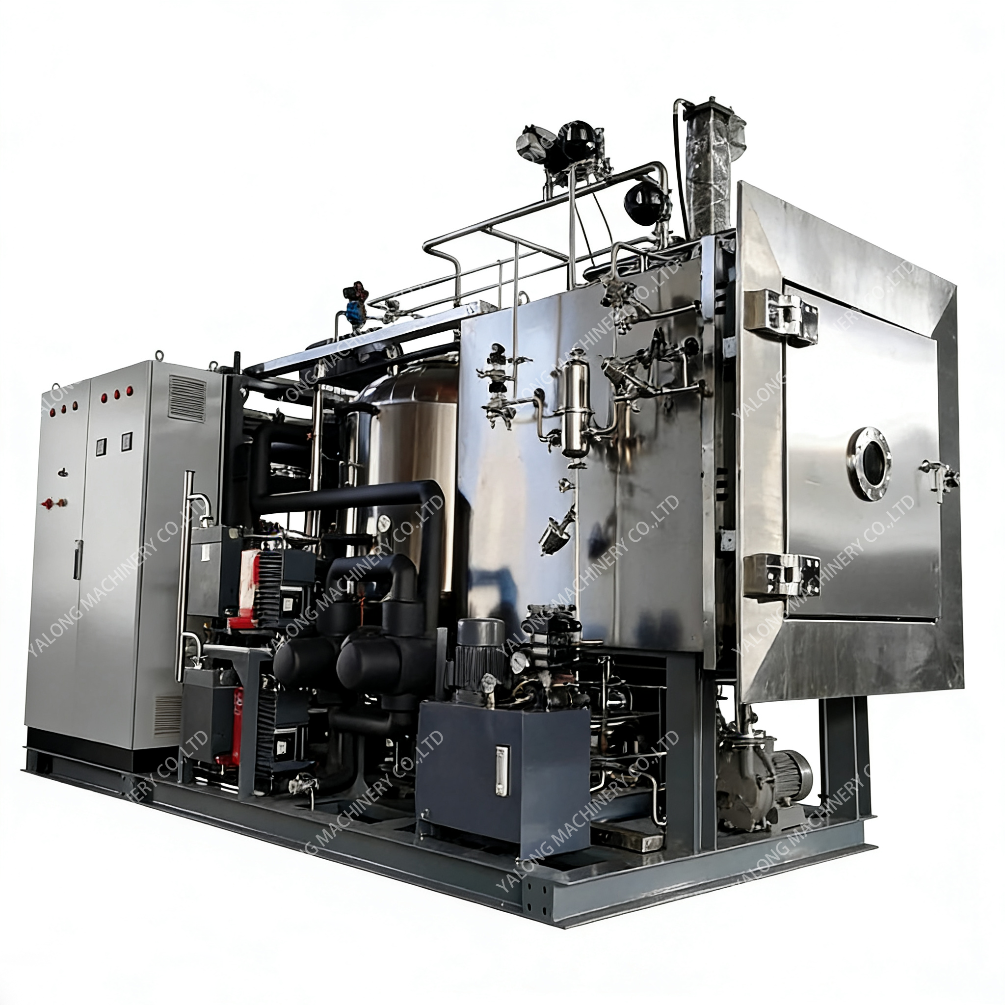This equipment is a highly efficient freeze-drying device, specially designed for large-scale production, integrating low-temperature freezing and vacuum sublimation technologies. It can process various heat-sensitive and high-value-added materials in batches. This equipment is equipped with a large-capacity freeze-drying chamber and an intelligent temperature control system, which can precisely regulate the parameters of the entire process of freezing, sublimation and desorption. After drying, the retention rate of active ingredients in the material is high, it is easy to rehydrate, and it has a long storage period. This equipment features a high degree of automation, strong processing capacity and stable operation, and is widely used in industrial production in industries such as medicine, biological products and food processing.