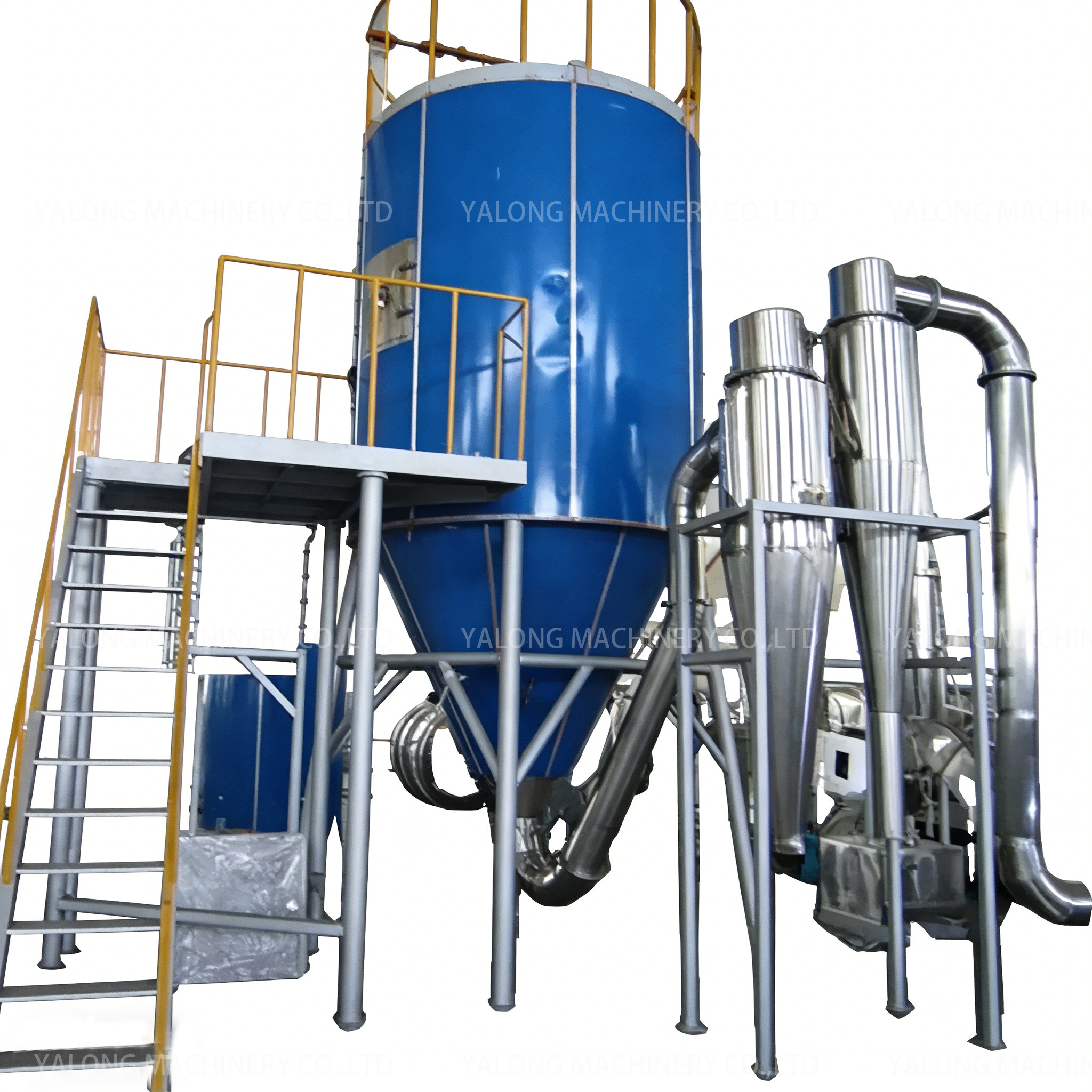 4. Low output: The LPG-150 atomization centrifugal dryer can process 50 to 60 kilograms of raw liquid per hour. In view of this, our factory has developed and designed a special dryer for traditional Chinese medicine extracts based on their characteristics and process requirements, and has obtained a Chinese patent. This dryer has solved the long-standing problems in the drying process of traditional Chinese medicine extracts. The dried raw materials have good color and stable quality, greatly improving economic benefits. Compared with the common LPG high-speed atomization dryer,