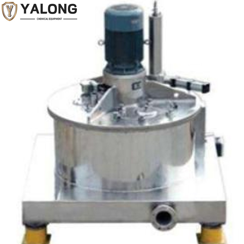 The L(P)GZ(MDL) series of motor-mounted direct-connection scraper bottom-discharge centrifuges can achieve complete and automatic solid-liquid separation. Before the centrifuge starts running, it can be quickly purged with nitrogen inside the centrifuge. Once the centrifuge is powered on, the drum begins to rotate. When the set feed speed is reached, the motor-mounted direct-connection centrifuge cannot install the feeder. The solid-liquid mixture is fed through the lateral feeding pipe. The drum increases its speed to the separation speed, and the solid-liquid mixture undergoes high-speed dehydration. The liquid passes through the pores of the filter cloth and is discharged through the discharge pipe. After dehydration, the drum slows down to the discharge speed, and the centrifuge scraper discharges the material. The material is transferred from the discharge chute at the bottom of the centrifuge to outside the machine.