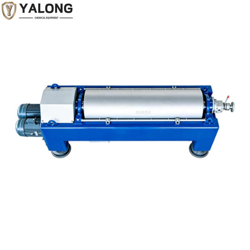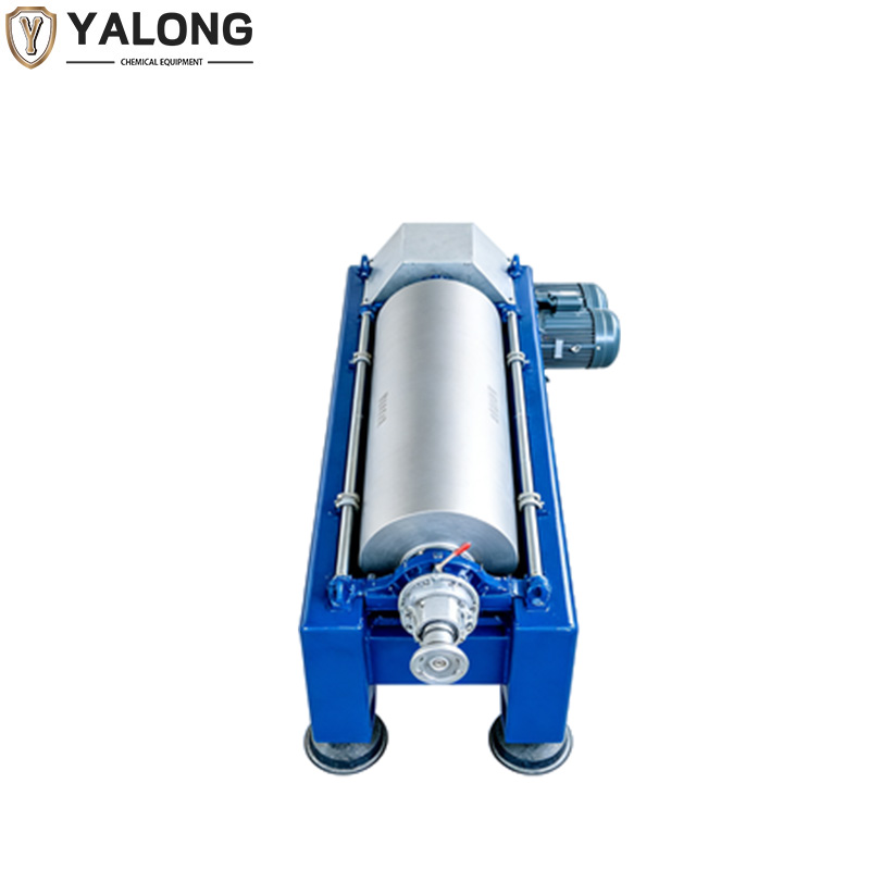 The materials enter through the feed pipe. Under the action of centrifugal force, the solid-phase materials deposit on the wall of the drum to form a sludge layer, while the liquid-phase materials form a liquid-phase ring. Starting from the drum wall, the solid-phase layer and the liquid-phase layer are successively formed inward. The screw continuously pushes the solid-phase materials deposited on the drum wall to the cone end of the drum, which are then discharged outside the machine through the discharge port. The liquid phase is discharged from the large end of the drum to the centrifugal pump.