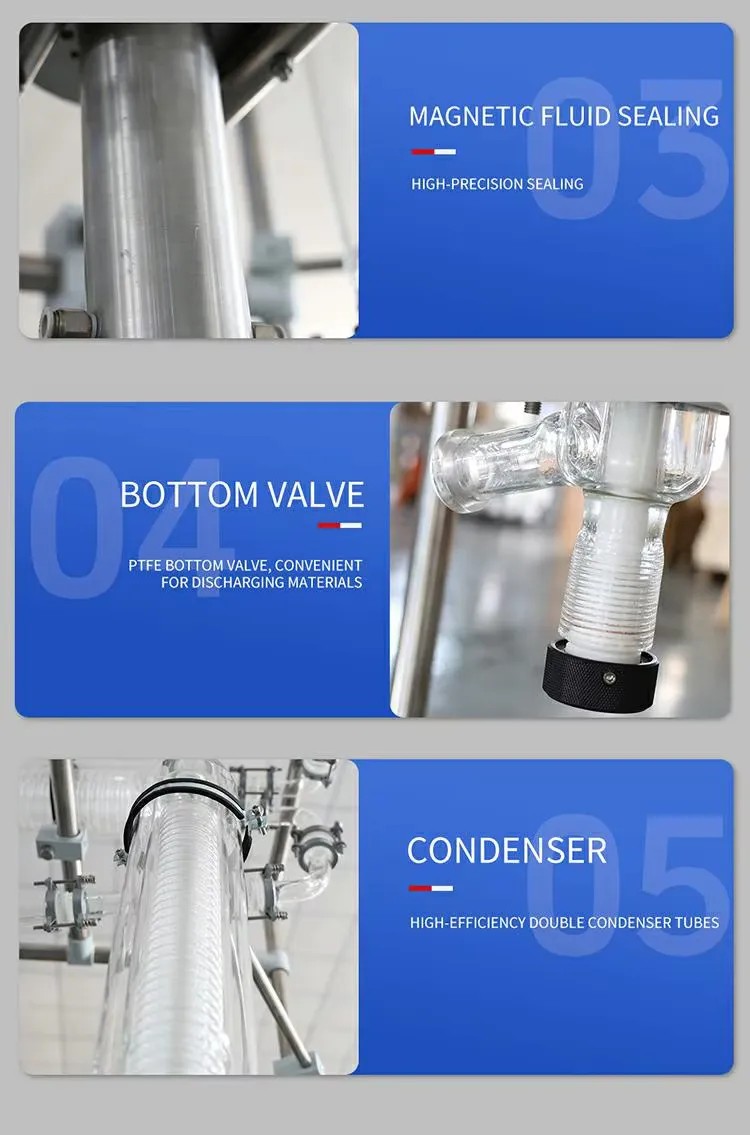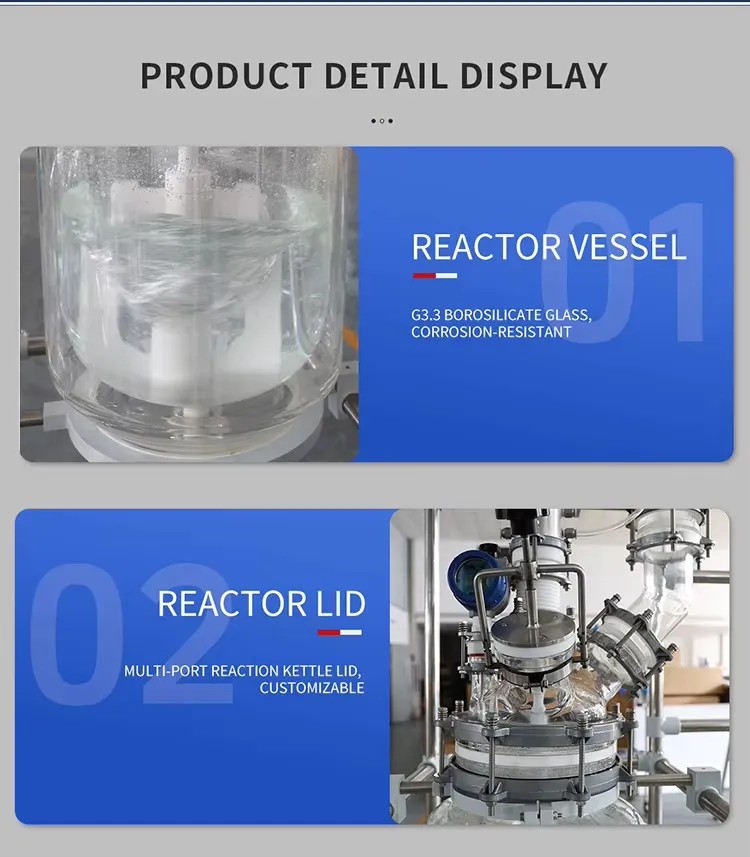 Equipped with an explosion-proof motor, variable frequency control system, and PTFE mechanical sealing, the reactor ensures stable and safe operation under stirring, vacuum, reflux, distillation, and other integrated processes. It is widely used in chemical synthesis, pharmaceuticals, fine chemicals, new materials R&D, biotechnology, and pilot-scale production.