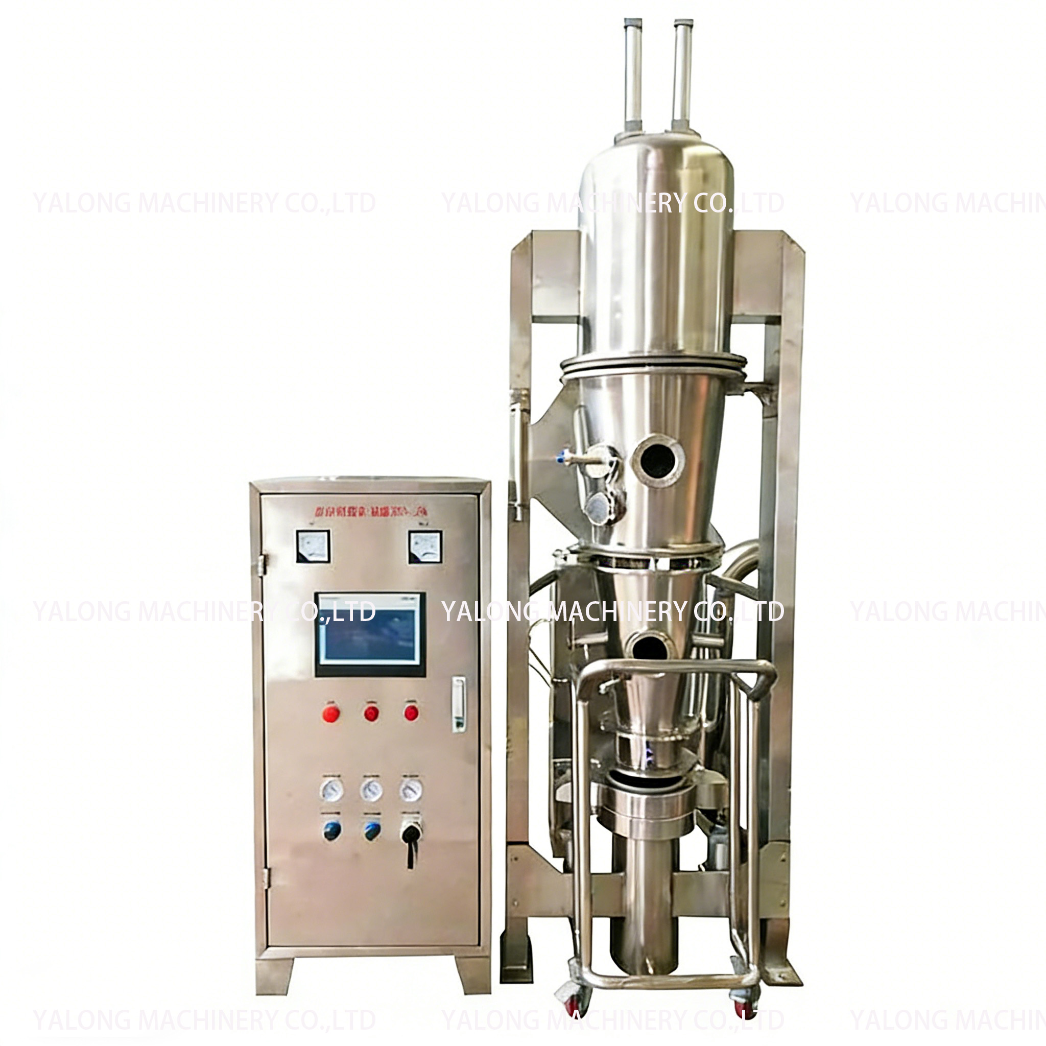 This set of equipment is specially developed for the healthcare industry, including a new type of granulator and a fluidized bed dryer, which can achieve integrated production from powder to qualified granules. The granulator adopts precise atomization and extrusion forming technology, and the fluidized bed dryer relies on the principle of efficient fluidized drying. Both comply with GMP and FDA standards. The inner surface of the equipment is mirror-polished without dead corners. It operates under a closed negative pressure, which can effectively control dust pollution, ensure the purity of materials, and meet various production needs such as pharmaceutical granules and health care product preparations, significantly improving production efficiency and product stability.