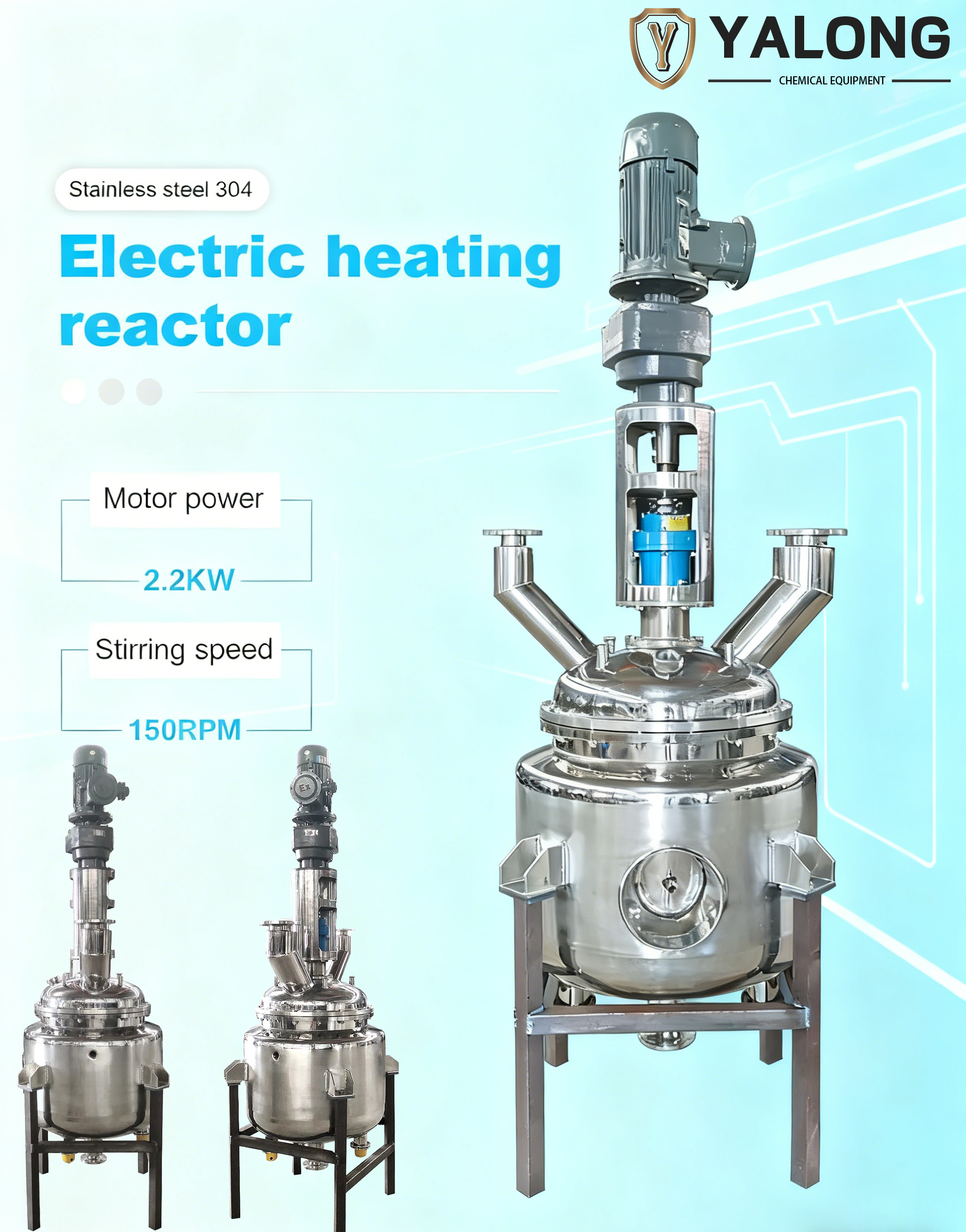 As professional chemical equipment, the YALONG stainless steel reactor uses high-quality stainless steel as its main material, boasting excellent corrosion resistance and high-temperature resistance that adapts to various harsh process environments. Equipped with a motor-driven high-efficiency agitation system and precision sealing components, it enables stable material mixing and reaction processes; the kettle body is designed with multiple feeding interfaces and a convenient discharge structure, facilitating material transfer and operation in the process flow.