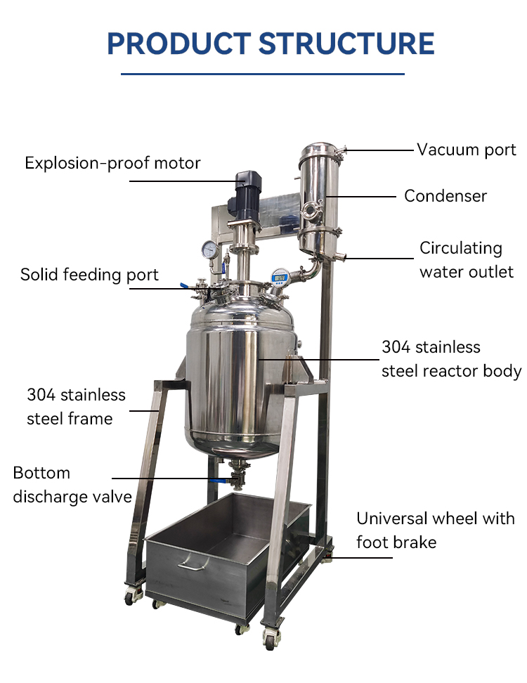 YaLong stainless steel reactor is a chemical reaction vessel of stainless steel. lt is composed of four parts: the inner vessel, jacket, stirring device, and supporting frame, participate in the completion of vulcanization, nitrification, hydrogenation,alkylation, polymerization, condensation and other processes, in order to participate in the intensive mixing of reactive substances as the premise, for heating, cooling,and liquid extraction and gas absorption and other physical changes using stirringdevice to achieve good results. lt has the characteristics of rapid heating, high temperature resistance, corrosion,resistance, health and easy to use.YaLong supplies various of stainless steel jacketed reactor from 20L to 300L. and the reactor can be used with heating/cooling circulator, cooling chiller, water cyclevacuum pump,etc.